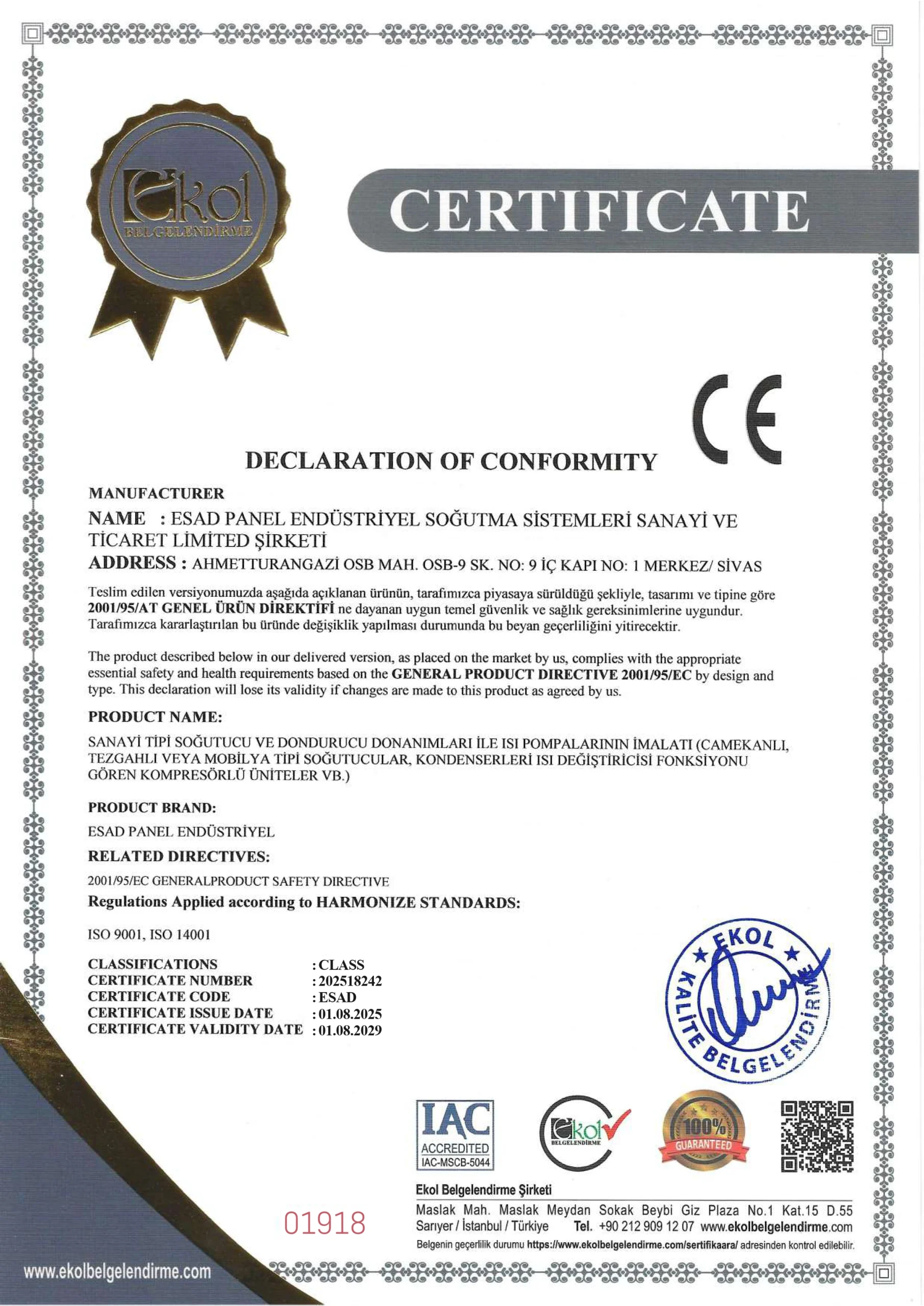 ESAD PANEL - CE Declaration of Conformity